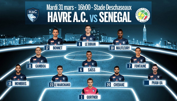 Voici le 11 de départ du HAC qui sera aligné cet après-midi par Thierry Goudet face au Sénégal au stade Deschaseaux :