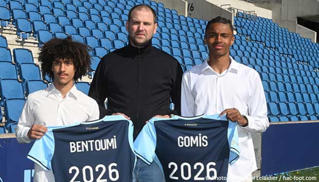 Un destin parallèle ! Tous deux nés en 2005 (16 novembre pour Mokrane, 23 septembre pour Yoni), ils sont repérés en région rouennaise par Mohamed El Kharraze et Franck Sale. Mokrane débuta à Petit-Couronne, Yoni à Oissel, avant de jouer ensemble au FCR… qu’ils quittèrent donc en 2018 pour le HAC. Et à force de travail, ils gravirent les échelons ! Yoni Gomis goûta le début de saison à Soquence et partagea son temps de jeu entre les U19 et la N3 (avec laquelle il inscrivit le but du maintien la semaine passée). Mokrane Bentoumi oscilla lui aussi entre U19 et N3 avant de débuter en Ligue 2 BKT avec trois entrées en jeu à Annecy, contre Valenciennes et à Bastia.